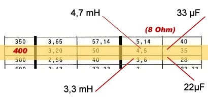 Für 4 Ω Weichen die L Werte halbieren und die C Werte verdoppeln