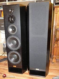 Bassreflex Gegen die großen Brüder fast zierlich. 3 Weg, 48 cm breit, 84,5 cm hoch und 41 cm tief, Gewicht 36 Kg. Schalldruck 93 dB, Belastbarkeit 150 W Sinus (IHF). |